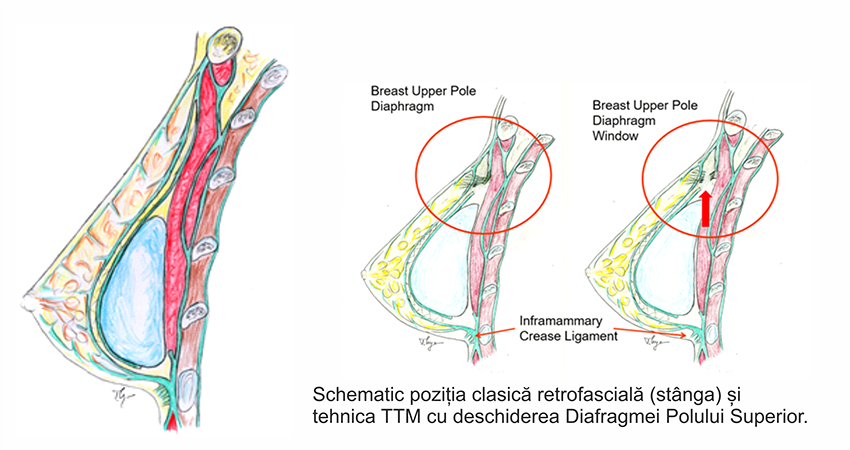 6. Inlocuirea implantelor este mult mai usoara, prin prezenta muschiului pectoral in spatele capsulei periprotetice, care poate fi indepartata daca este cazul.