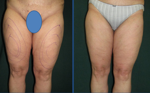 Lipoaspirație la nivelul coapselor, intern, anterior, extern și la nivelul genunchilor, intern