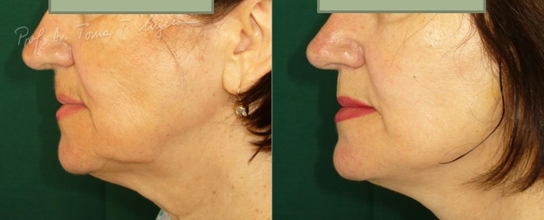 Prin acest lifting se obtine atenuarea pliurilor profunde de la nivelul nasului si buzelor, ridicarea usoara a coltului ochilor si netezirea gatului.
