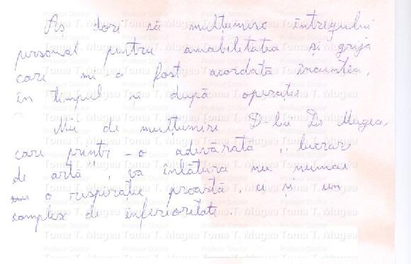 „As dori sa multumesc intregului personal pentru amabilitatea si grija care mi-a fost acordata inaintea, in timpul si dupa operatie.